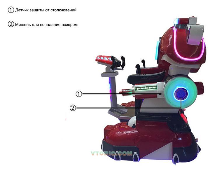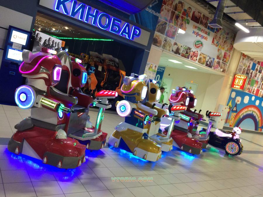Добрый день. Продается новинка для проката Робот "Аватар". Робот имеет семь скоростей от 2 до 7 км/ч. От 4 лет. Можно кататься взрослый + ребенок. Выдерживает вес до 200 кг. Два вида оружия – пулемёты (имитация), лазерная пушка. С другими роботами играет в "Битву Роботов". На корпусе сенсорные мишени, количество попаданий фиксируется на дисплее на спине робота. Система безопасности - 8 парктроников по периметру на корпусе. Световые, звуковые спецэффекты. Установлен счетчик проката. Множество настроек в меню. Габариты: высота 1650 мм, ширина 1250 м, длина 1500 мм. Аккумуляторы 12Волт, 42 А - 2 шт. Хватает на 10-12 часов работы. Вес 150 кг. Не разбирается. В комплекте блок питания, пульт, магнитная карточка запуска сессии. Осмотр в Москве. Возможно доставка в любой город. Документы в наличии: сертификат, технический паспорт, руководство по эксплуатации. Все на русском языке.