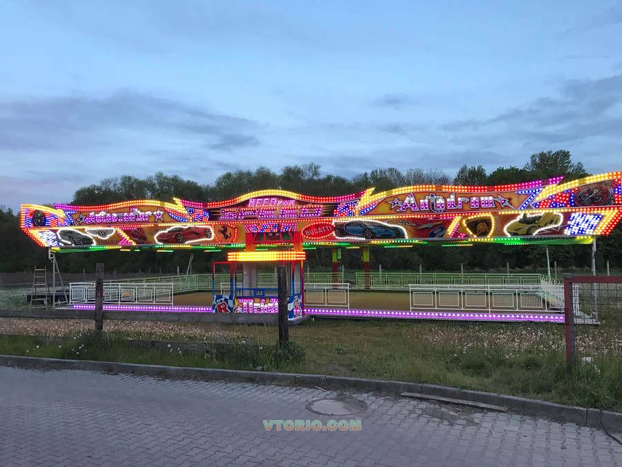 Вместимость - 20 пассажиров Размер площадки - 20*10, 20*11, 20*12 м. 1 трэйлер - 14*2.5*4 м/ 40*8.2*13 Свет 5500 pcs. LED/RCB LED Общая мощность - 5 kw Время установки - 3 часа, 2 человека. Общий вес - 30 тон. Прост в настройке и обслуживании. Очень популярный семейный аттракцион в Европе