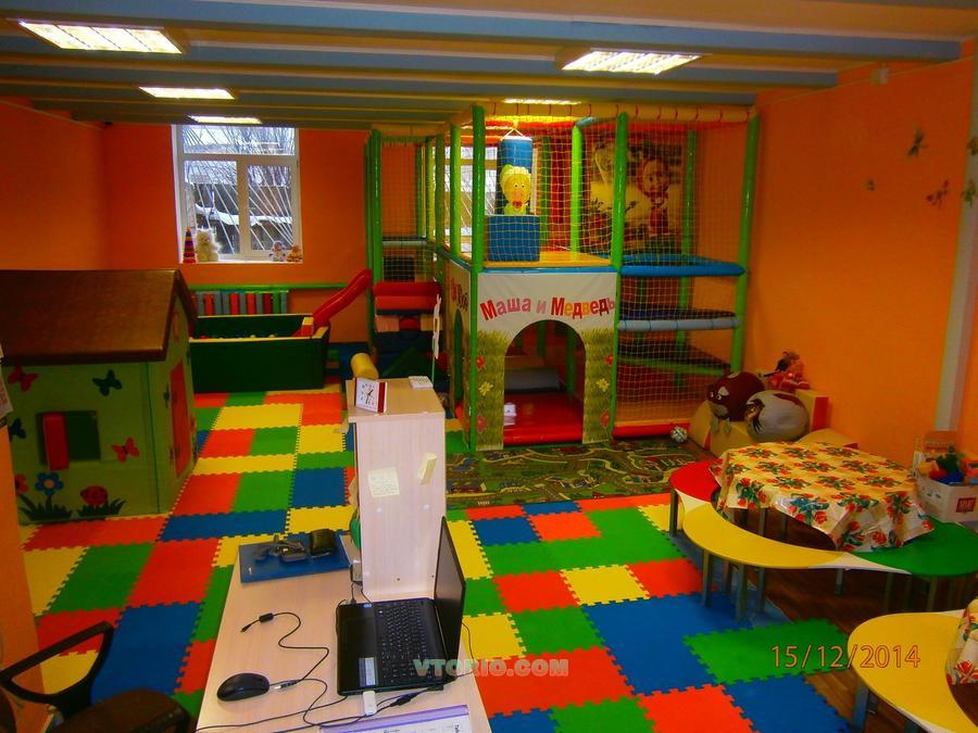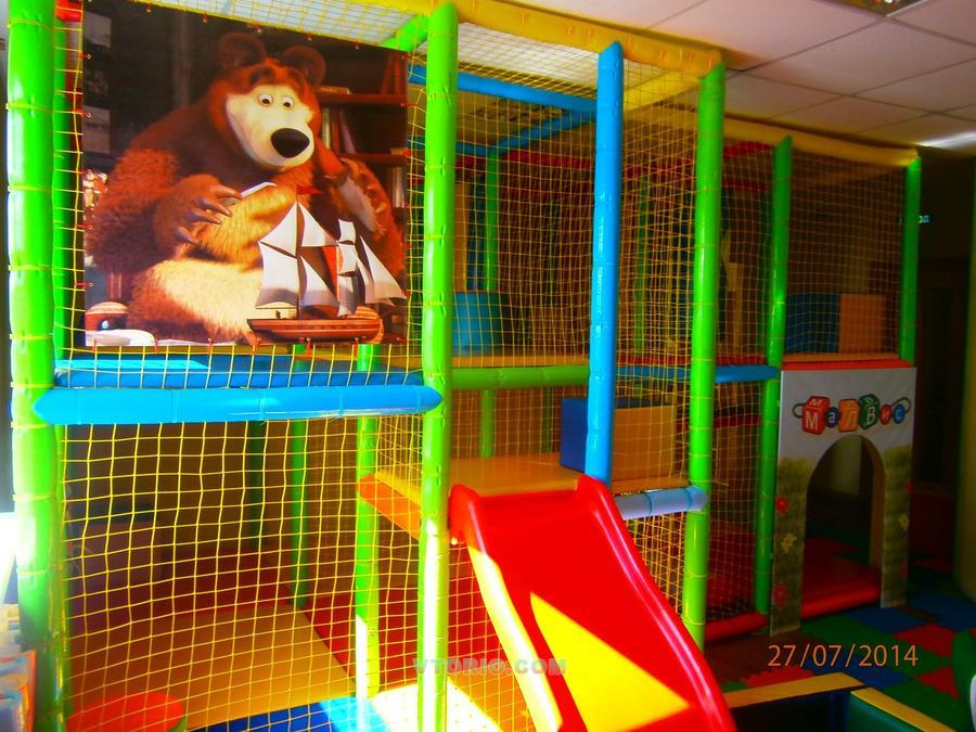 Имеется горка и бассейн с шарами, груши, сетка ( батут).