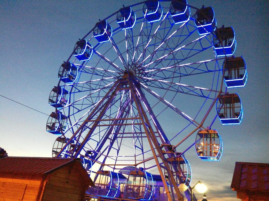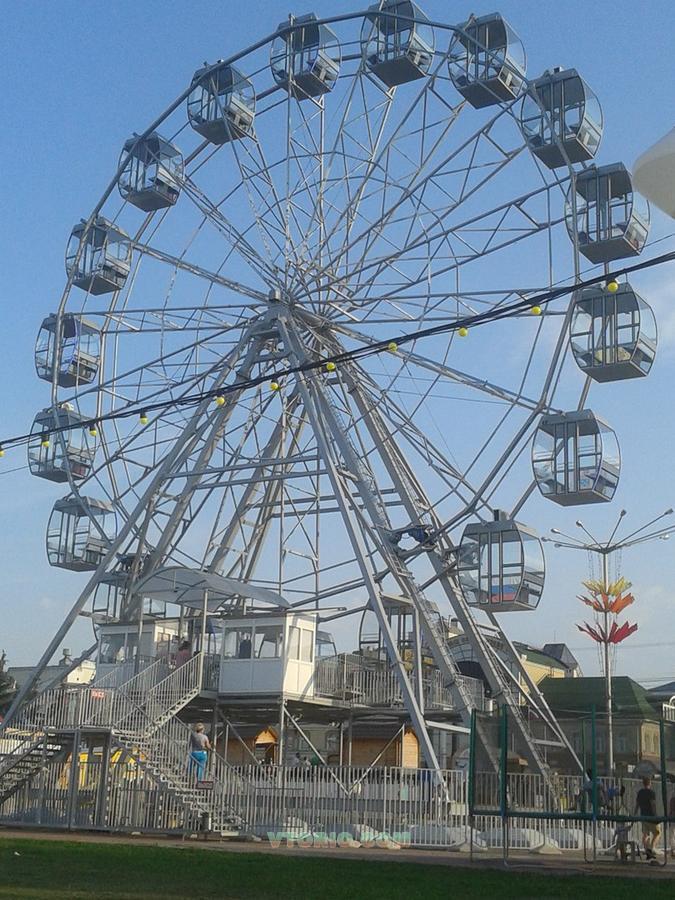 Аттракцион "Колесо обозрения 30 метров". Производство г. Красноярск, год выпуска 2016. Аттракцион безфундаментный, 18 закрытых кабин (с кондиционерами и отоплением), круглогодичного использования, высокий посадочный вокзал, привод 8 кВт. Также в стоимость входит: 2 операторских кабины (зимнее исполнение), 1 касса (зимнее исполнение), электронная программа продажи билетов, турнекеты, видеонаблюдение, бензогенератор 8 кВт, регулировка скорости вращения, иллюминация (РГБ лампы). Стоимость 16.000.000 рублей Продажа в связи с уходом в другую отрасль.