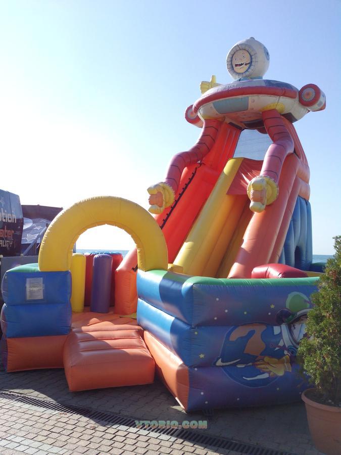 Батут "НЛО". Представляет компактную горку-лабиринт. Размеры: 6 х 7 х 5,5 м. Идеальный аттракцион для небольших площадей. Отличное качество графики (долго не выгорает на солнце) и швов. Аттракцион б/у, установлен в Сочи. Отправка в любой регион России. В комплект поставки входит: батут, 2 воздушных вентилятора, паспорт на аттракцион.