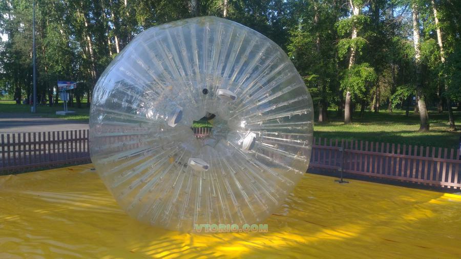Зорб не использовался ниразу для спуска, приобретался для парка, но не использовался. Выставляли его на праздники. Состояние нового. Полный комплект. Очень надёжный материал.