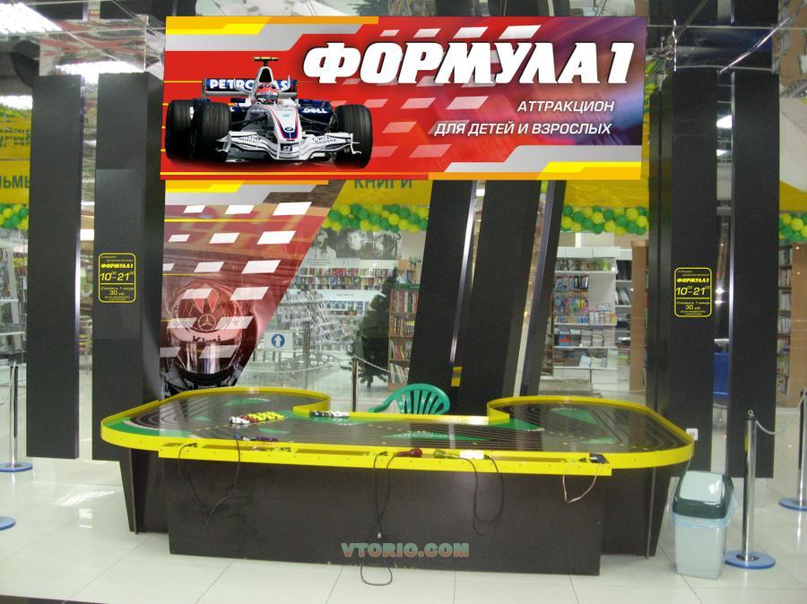 Модель П5. Отличное состояние. Такой аттракцион работал у нас в ТРК и парке отдыха. Подходит для работы на открытых площадках и в помещениях. Характеристики аттракциона: габариты — 3.6м.*2, 5м. количество игровых дорожек — 5 Комплектация: Полотно трассы Основание Блок подключения пультов управления Блок питания Автомодели Пульты управления Жетоны Цена нового аттракциона у производителя: 260000р. компания «Болид», Санкт-Петербург