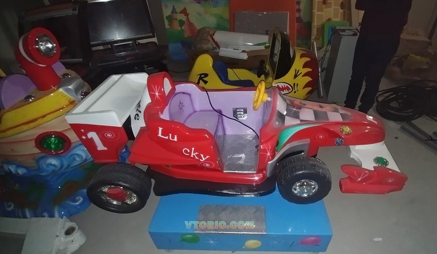 Детская мини-качалка с музыкальным сопровождением. В эксплуатации не была. Сложный механизм качания обеспечивают два шатуна (вперед назад и влево вправо). Ребенок становится участником спортивного заезда Формулы 1. Время катания регулируется - до 4 минут. Встроенный жетоноприемник, работающий от эталонного жетона (за дополнительную плату возможна установка купюроприёмника или монетоприемника). Рекомендовано детям до 7-8 лет. Рекомендуется для установки в развлекательных центрах, торговых центрах, магазинах и пр.