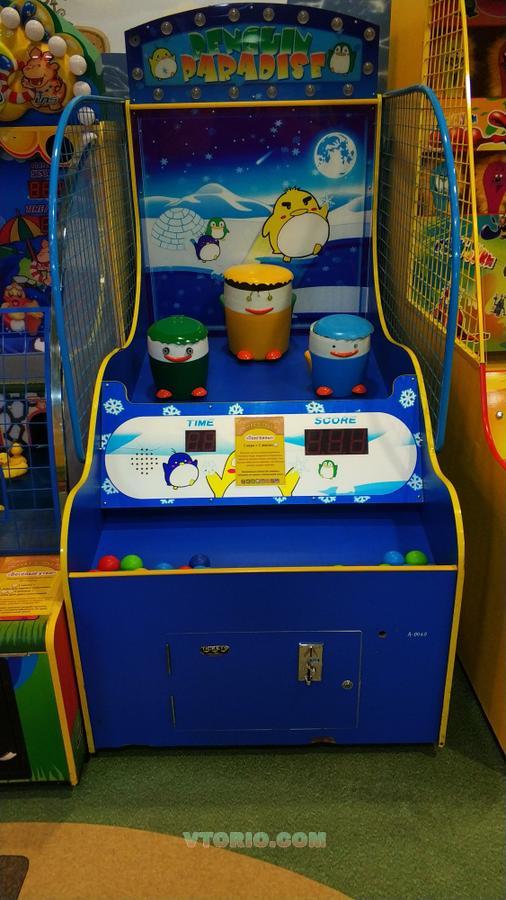 Автомат на меткость, цель игры забросить как можно больше шариков в открывающиеся фигурки пингвинов. Как показала эксплуатация автомат достаточно кассовый и пользуется популярностью. По внешнему виду есть недочеты, но ничего критичного. Одного пингвина отреставрировали, две других фигуры в процессе реставрации. Сенсоры, тикетник, жетонник - исправны. Шары в комплекте. Продажа в связи с закрытием площадки.