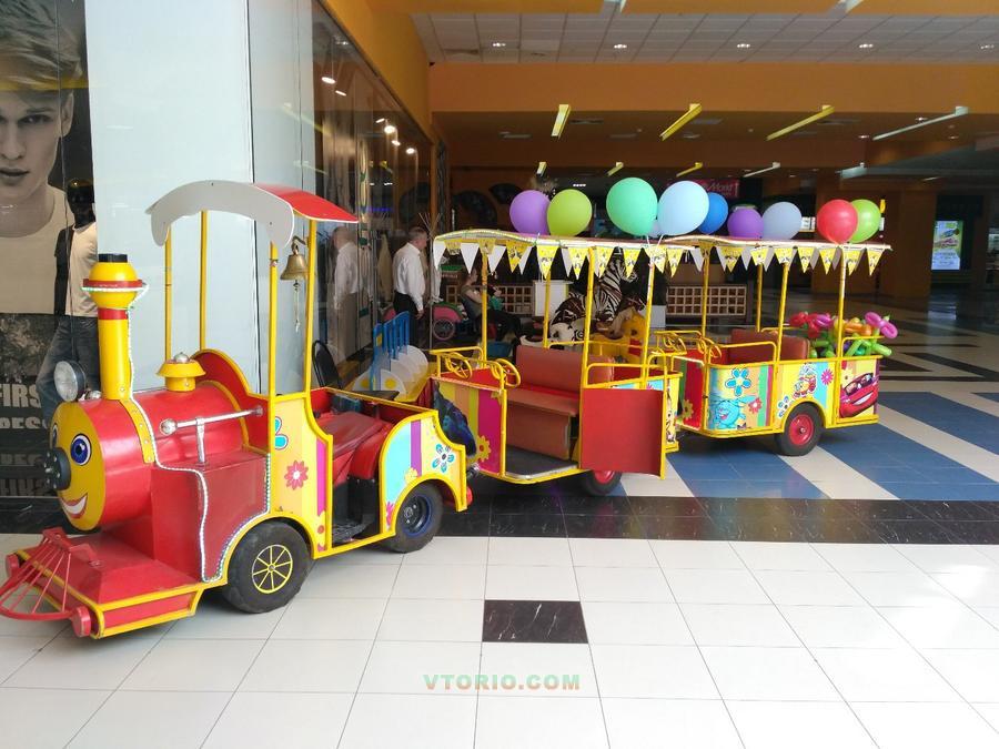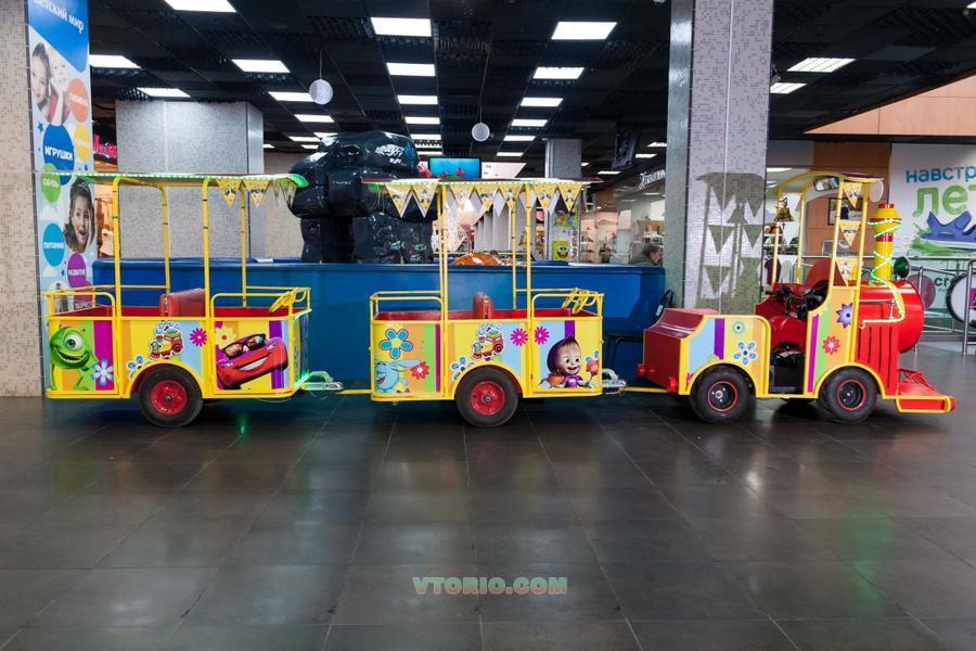 Состояние - отличное. Эксплуатировался в ТЦ 8 месяцев. В комплект паровозика входят следующие элементы, значительно повышающие уровень продаж по сравнению с подобными аналогами: - светодиодная подсветка всего паровозика; - автомагнитола с колонками и флешкой с набором популярных детских песен; - по 4 руля в каждом вагончике; - колокольчики (рынды) у водителя и в первом вагоне. Проконсультирую по любым вопросам. Звоните!