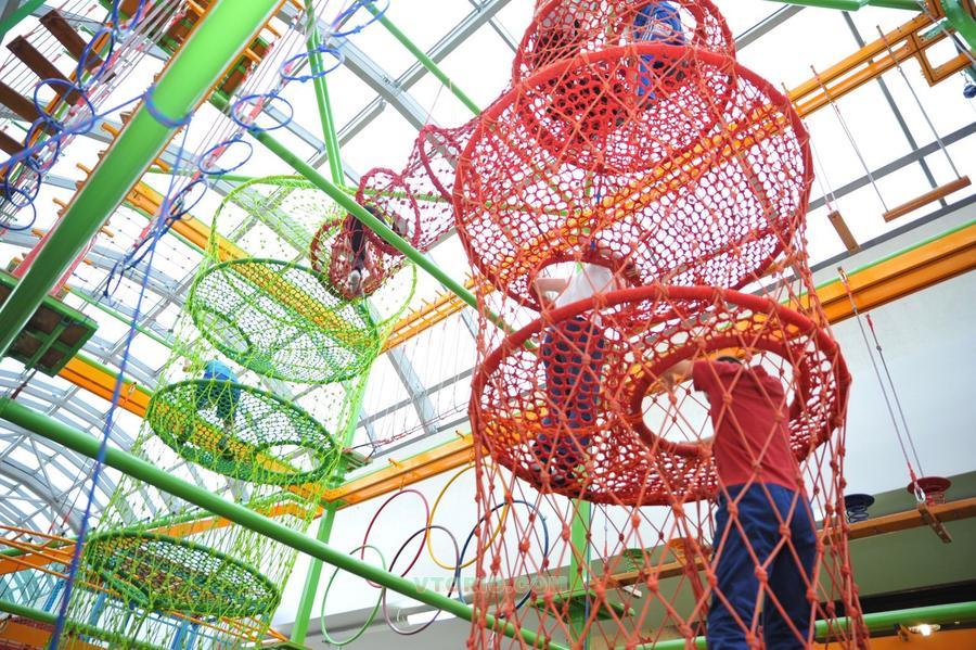 Тропа приключений - это уникальный спортивно-развлекательный комплекс, состоящий из многоуровневой серии препятствий, связанных в единую логическую цепь, объединённую общей идеей и правилами прохождения. Тропа состоит из трех уровней, различных по сложности (начинающая, детская, взрослая). В состав парка также входит две сетки от пола, до потолка верхнего уровня, соединённых между собой – «улей»