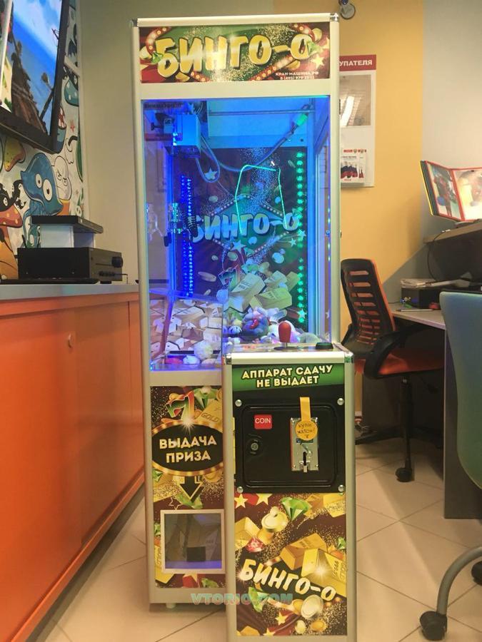 Высота: 200 см. Ширина: 86 см. Глубина с тумбочкой: 100 см., без тумбочки: 76 см. Монетоприемник. Полный комплект документов. Оперативная, выездная сервисная служба. Москва. Цена: 50000 руб. Торг Для выигрыша необходимо схватить игрушку, после чего клешня сама отнесет ее к горке с толкателем. Толкатель будет направлять игрушку к призовому окну. Аппарат очень интересен тем, что перед толкателем скапливается много игрушек, их можно выиграть сразу несколько за одну игру. Аппарат рассчитан под игрушки, шоколадки, конфеты от 8-12 см. Популярность аппарат обеспечена 100% подарком — попрыгунчиком. Для покупателей аппарата подарки - стандартный набор игрушек микс отличного качества от 8-12 см.,