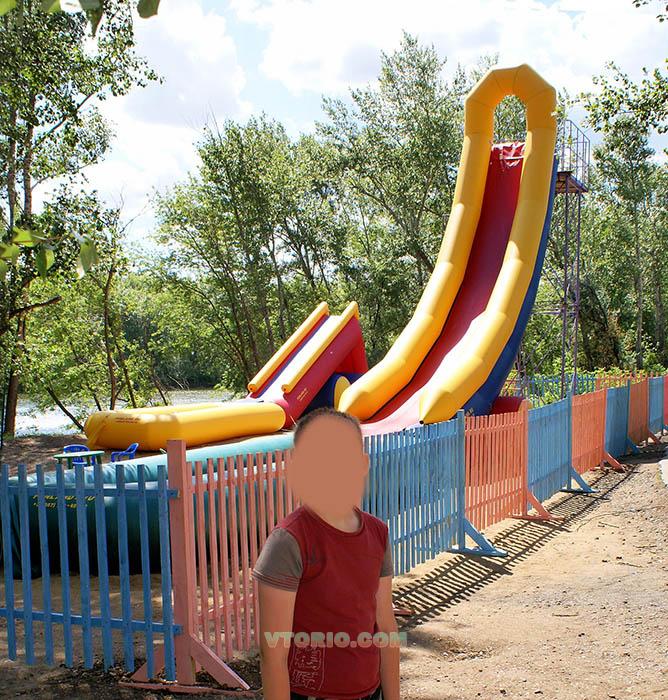 - Оборудование » Надувные аттракционы » Продам » Водная горка Дуга Д-5 + бассейн, Надувной футбол, БАТУТ "Бригантина"