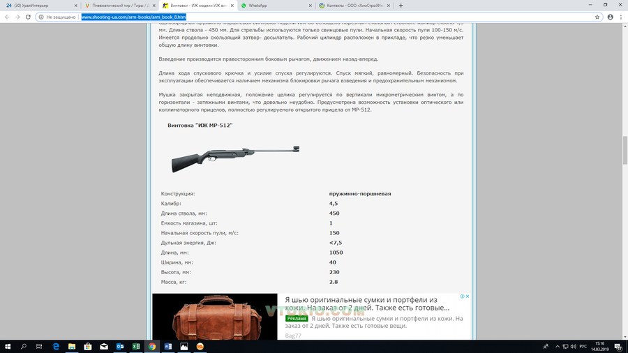 - винтовки пневматические ИЖ-512 в количестве 3-5 шт;