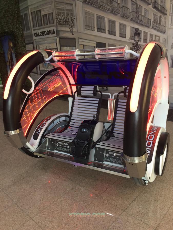 Имеет 2 посадочных места, управляется с помощью джойстика. Оборудован сенсорными датчиками торможения для безопасной