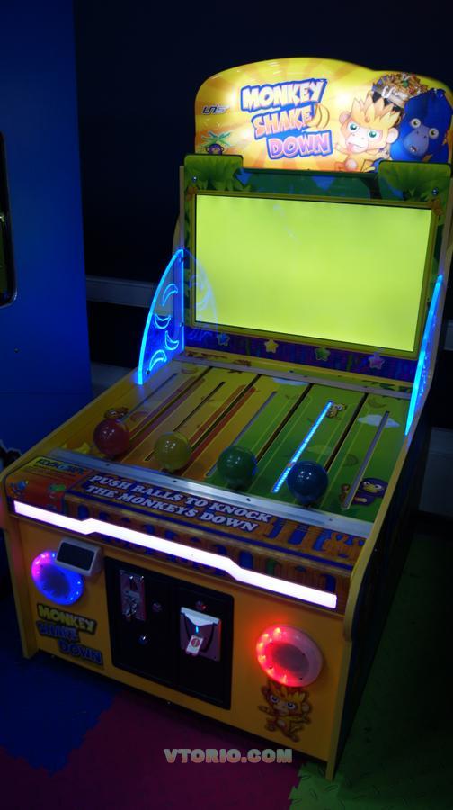 3 уровня, яркий дизайн и светодиодная подсветка. Цель игры попадать шариками в обезьян, не давая им воровать бананы. Можно выиграть бонус,победив Царя обезьян!