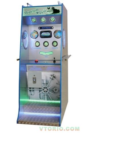 Игрок входит в боевой отсек подводной лодки. На экране появляется море и разнообразные движущиеся корабли. Необходимо, нажимая на кнопку, "пускать торпеды" и подрывать эти суда. За каждое попадание на экране начисляются очки. Настройка времени игры от 1 до 60 минут. Подсветка иллюминаторов, приборов, ступенек.