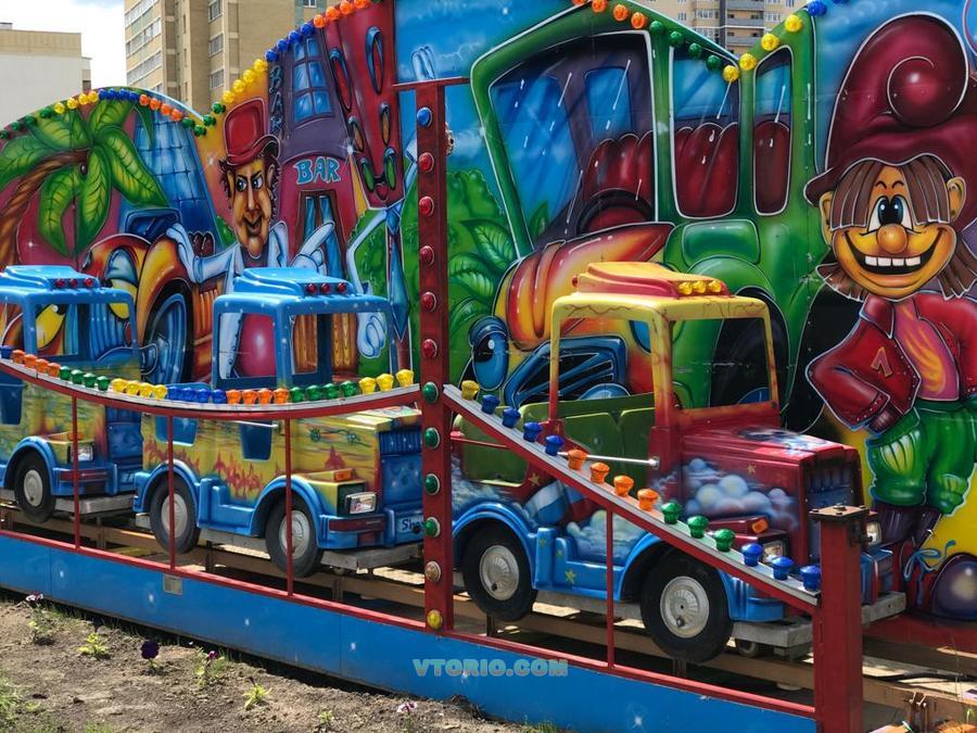 Длина по ограждению 14,3м, длина 11м, ширина 8,6м, высота поезда 3м, Общая площадь 123кв.м., Вес 2000кг.