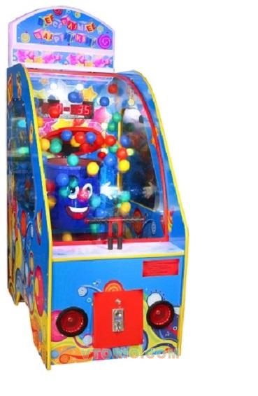 Необходимо сильно нажимать на рычаг, тем самым подбрасывая мячики, и стараться закинуть их в открывающийся и закрывающийся контейнер.