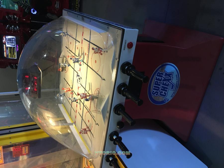 Игровой аппарат с антивандальным защитным стеклом, которое исключает воровство шайбы. Аттракцион американского производства и качества. Имеет электронное табло. Автоматический вброс шайбы. Озвучка в стиле нхл.