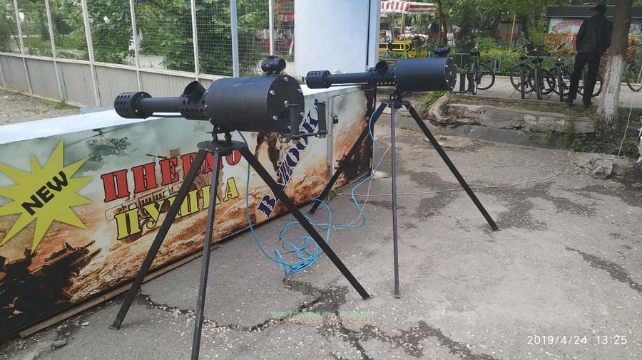Пневмопушка стреляет теннисными мячами на расстояние до 15 метров в мишень прямой наводкой. Мимо этого нового аттракциона никто не сможет пройти мимо. Родители, выбирая в каком тире будет стрелять ребенок, всегда отдают предпочтение именно аттракциону Bazooka. Это связано со зрелищностью выстрела и легкостью прицеливания через оптический (коллиматорный) прицел. Но не надо думать что аттракцион детский! Взрослые граждане никогда не против проверить себя в меткости и побороться за приз.