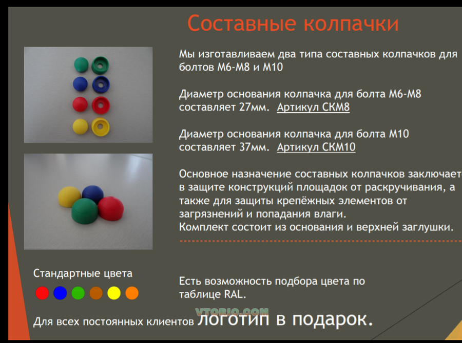 - Оборудование » Уличные площадки » Продам » Составной колпачок М8 ,М10 для детского уличного оборудования