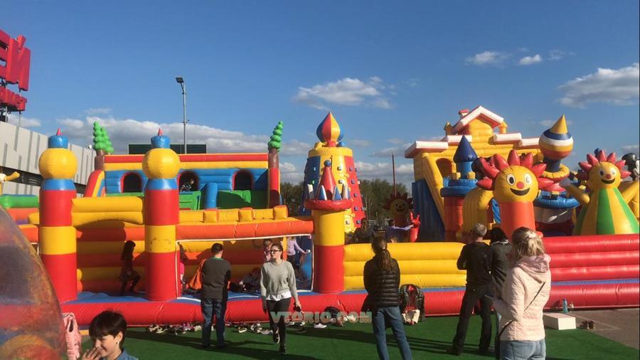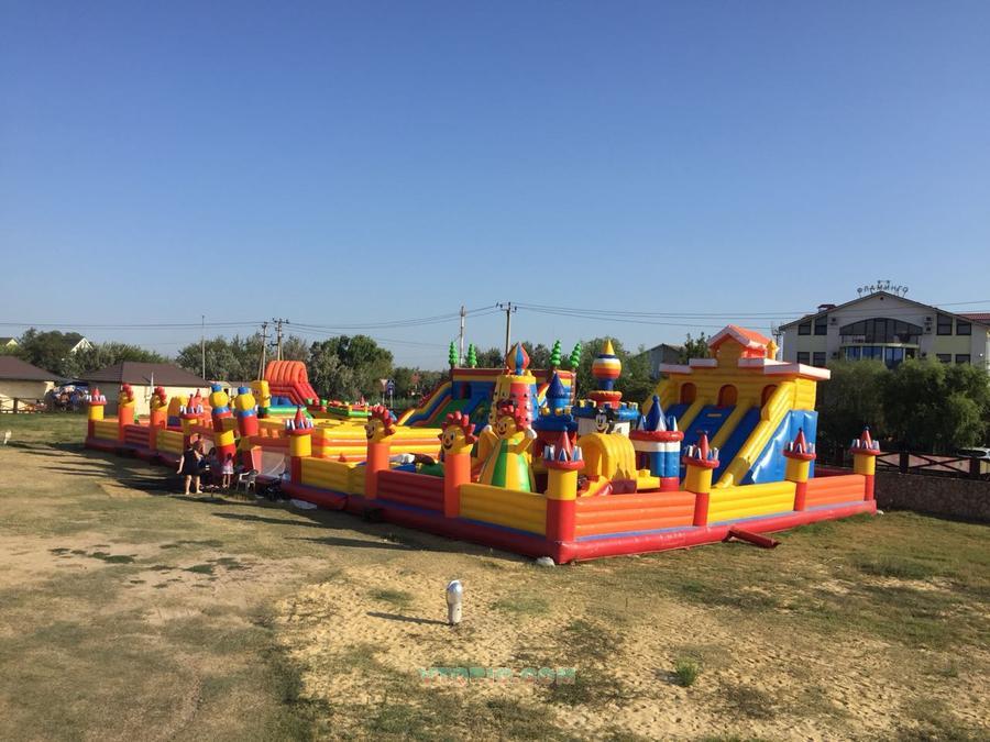 Огромных рзмеров надувной комплекс. В него входят Полоса препятствий; Лабиринты; Горки. Разделен на 3 тематики. Отработал 6 месяц. Состояние отличное. Размер: Ширина 16м. Длина 31м. Высота 6м.