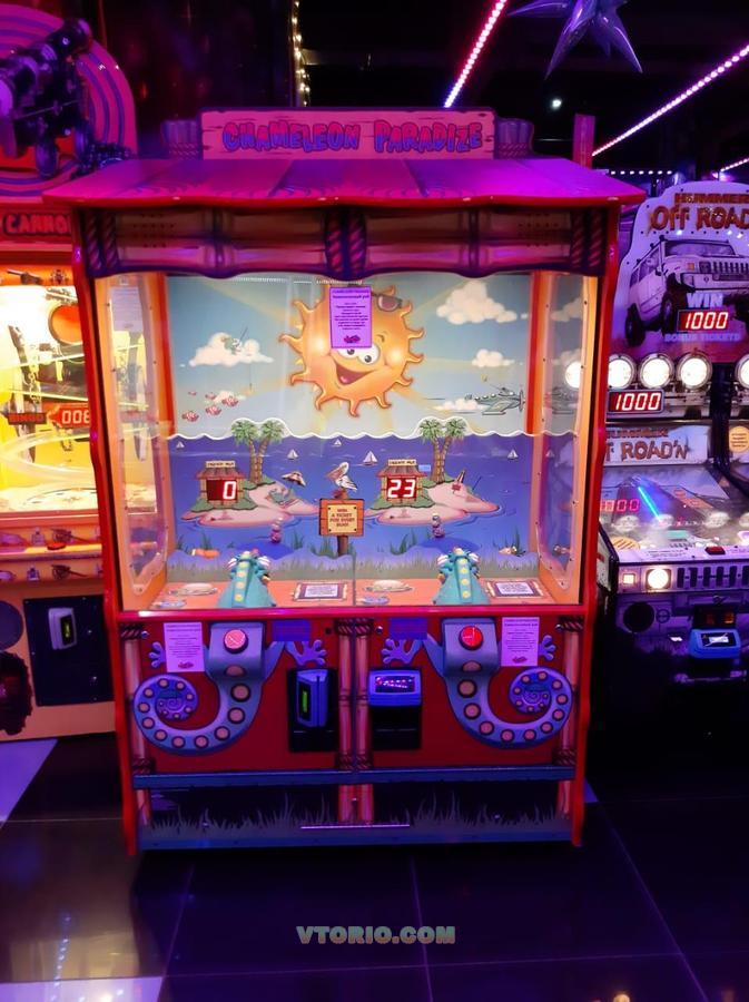 Игрок нажимает кнопку на спине забавного хамелеона и управляет его липким язычком, пытаясь в отведенное время сбить как можно больше кружащих неподалеку жучков.