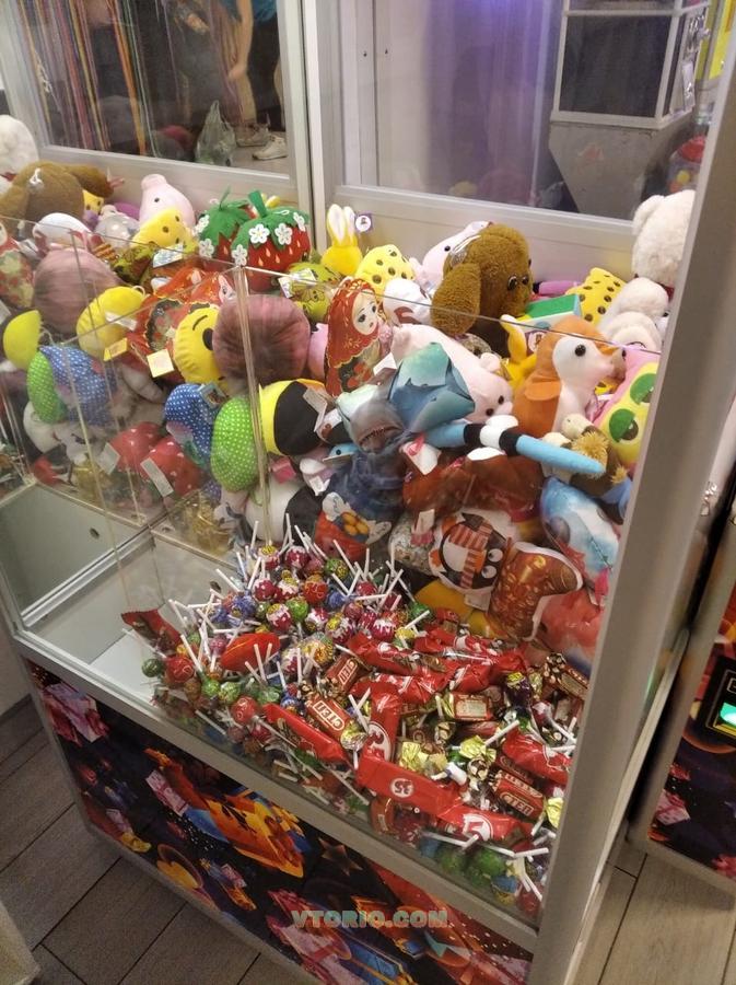 Остаток игрушек, сладостей в подарок,в каждом аппарате примерно на 6-9 тыс.
