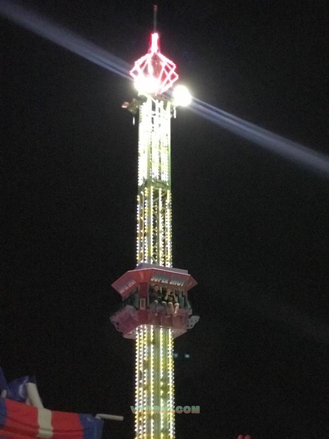 Технические характеристики: Электроэнергия – 208/230 VAC 3 фазы Общ. потребляемая мощность (макс. нагрузка) – 170 А / 35 kw Потребляемая мощность освещения – 70 А / 14,5 kw Потребляемая мощность аттракциона (макс. нагрузка) – 100 А / 20,8 kw Подъем кабины – электрический подъемник Статический тормоз – гидравлический Динамический тормоз – бесконтактные постоянные магниты Стальной трос – 6Х26Х5/8 Крепежные болты (Roto Bolt) 1х10 ( с установленным моментом затяжки 250 ft. lbs)