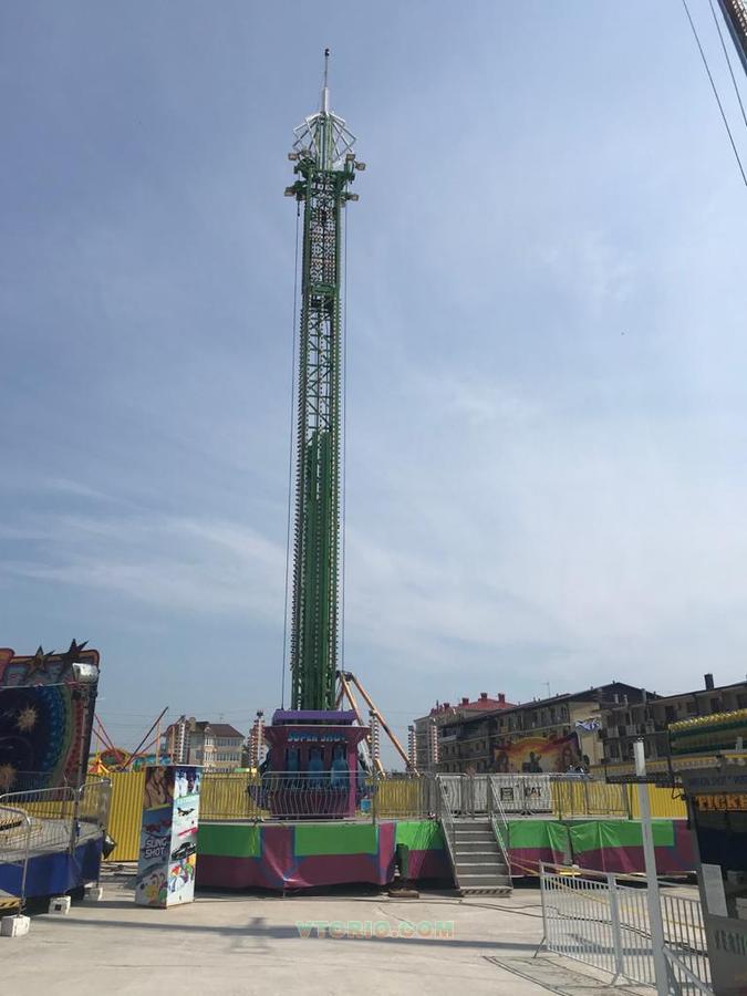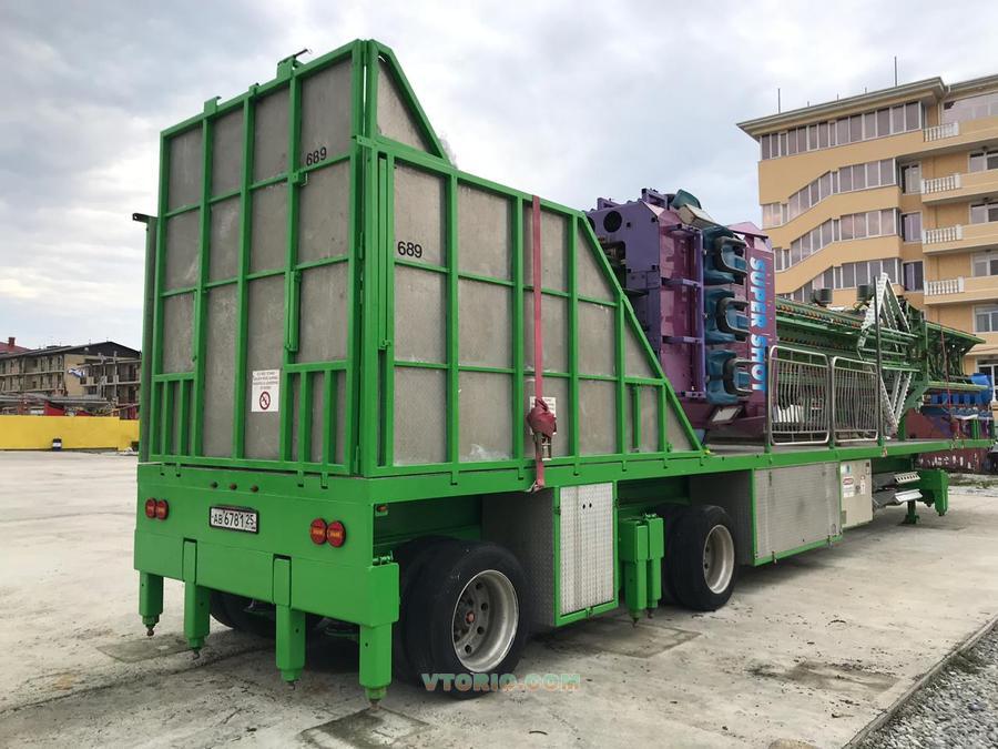 Аттракцион Башня свободного падения Super Shot – передвижной развлекательный аттракцион, который обеспечивает свободное вертикально падение. Аттракцион транспортируется и устанавливается на одном трейлере. Производитель A.R.M US INC. Америка 2002 года. Прицеп растаможен и стоит на учете в ГИБДД.