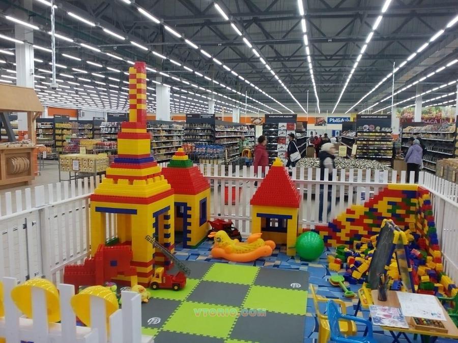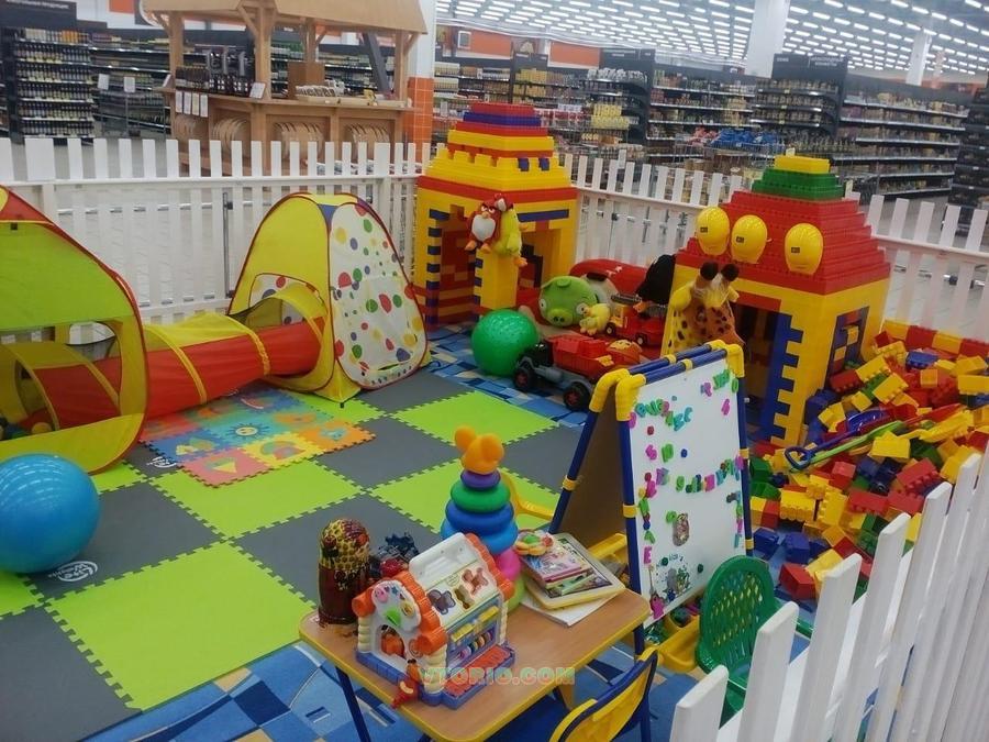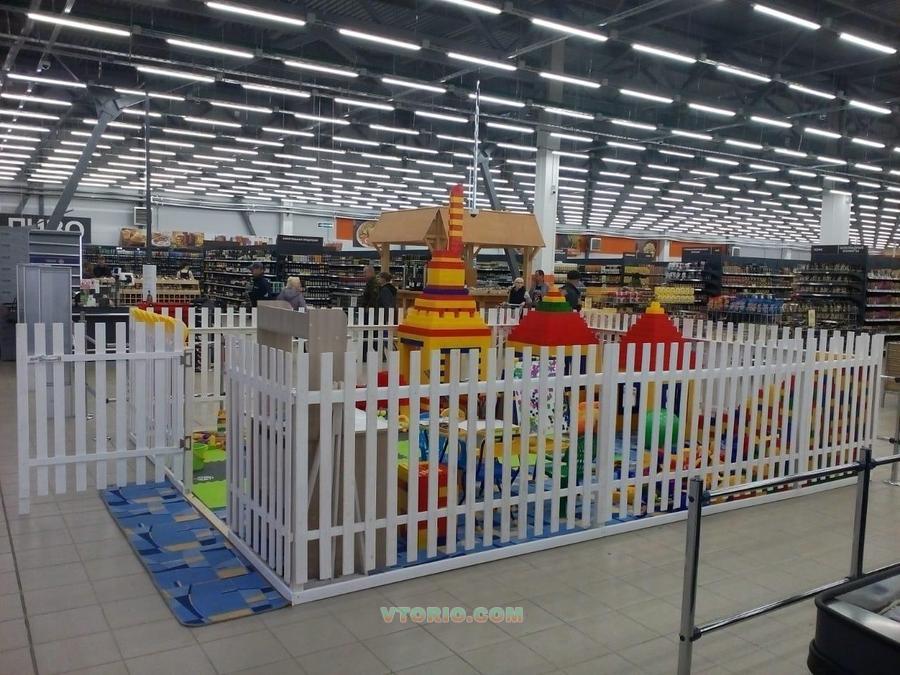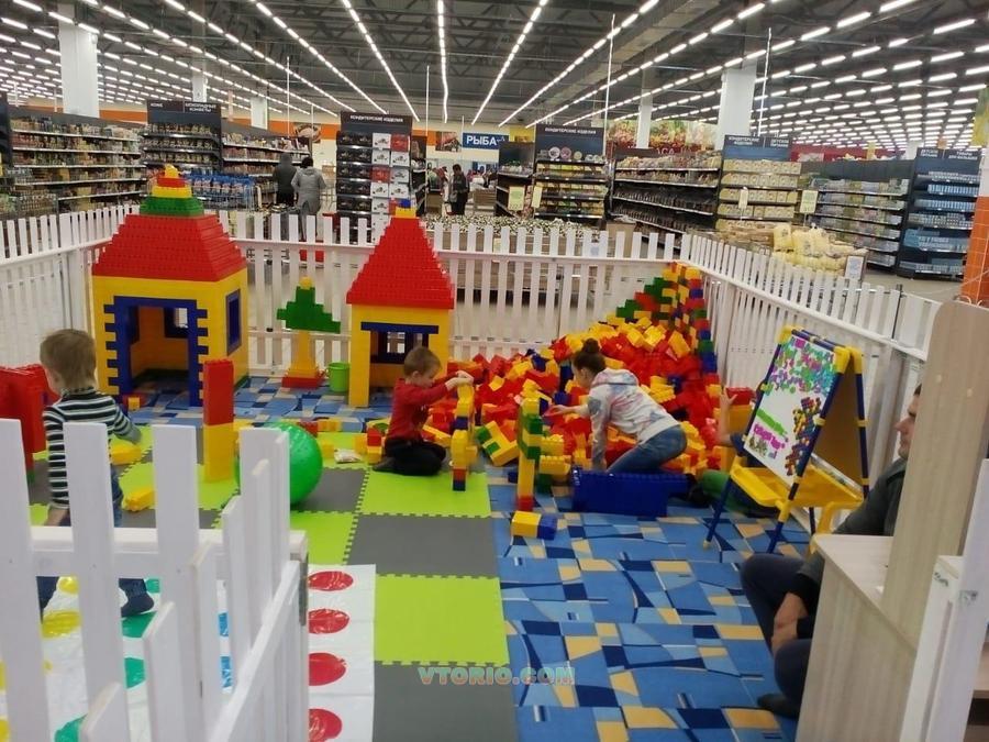 В комплекте:1500 больших кубика, различные игрушки, мягкий диванчик,мольберт,столик для творчества.