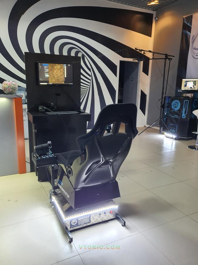 Производство 2019 года. Приобретен по договору купли-продажи. Спецификация: черная стойка для расположения оборудования; шлем Oculus; подвижная платформа; контроллеры Logitech X52 и Logitech Flight Rudder Pedals; игровой комплект на базе видеокарты NVidia Geforce GTX 1070 8 Gb; монитор 22; беспроводные мышь и клавиатура; необходимые драйвера; программы для подключения игр установлены (DCS World Steam Edition); комплект для крепления руля; джойстик; активированная Windows 10 (Home); установлена игра DCS World Steam Edition.