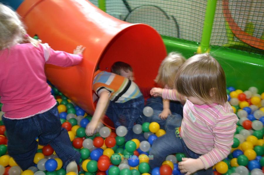 В комплект входит батут, горка, полоса препятствий, сухой бассейн с шариками, мягкий конструктор, мягкий пол.