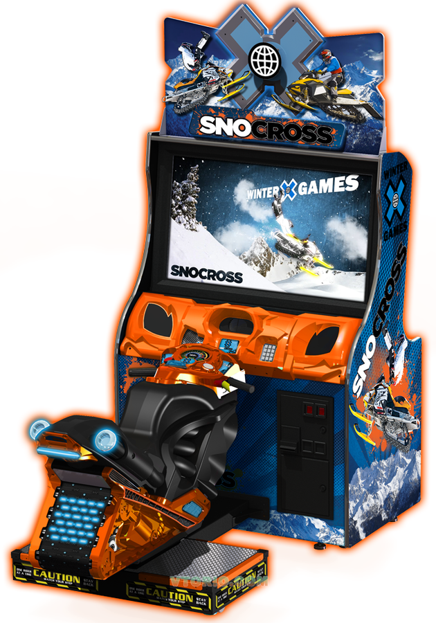 Спортивный имитатор гонок на снегомобилях, Детский игровой автомат оборудован подвижной платфоромой для реалистичности движений в игре, 42 дюймовым монитором. Выбор из 6 снегоходов и саней, 7 трасс по разным частям мира (во Франции, Антарктике, В Китае, Аляске, Вашингтоне, Москве и Колорадо).. Игроки могут выполнять головокружительные трюки, стрелять снежками в гонке за лидерство. игроки могут поделиться своими заработанными баллами с пользователями Facebook спомощью персонализированного QR кода. Возможна совместная работа аппаратов по сети. В наличии 2 шт.