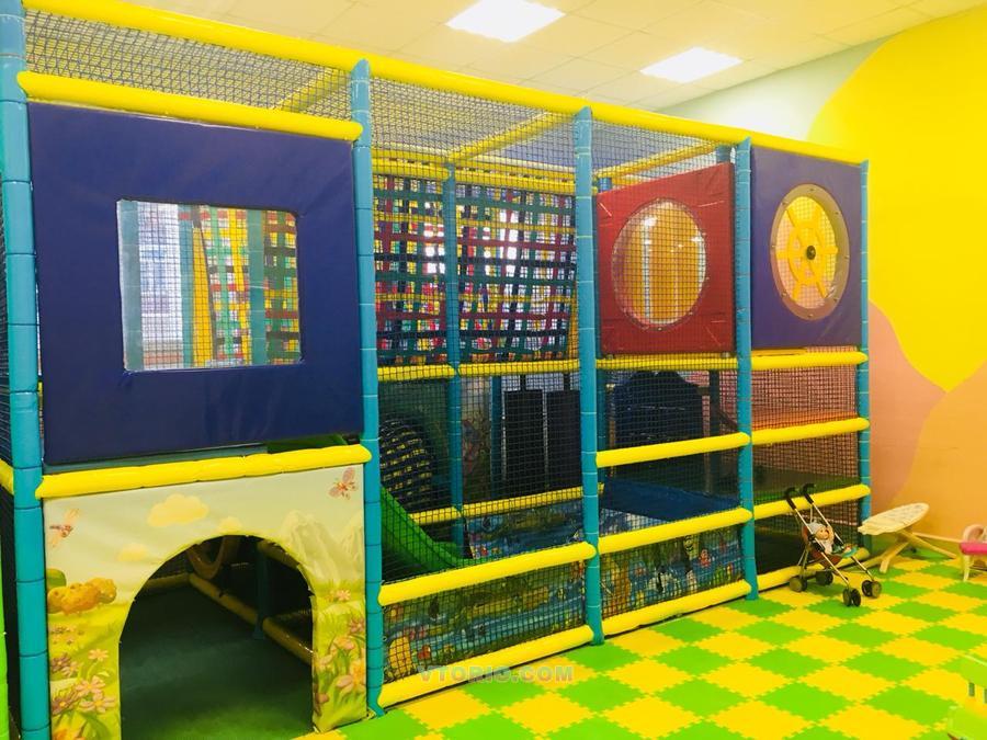 Игровой лабиринт для организации детского досуга в магазинах и небольших кафе или для отдельных детских игровых комнат. Красочный лабиринт с открытой пластиковой горкой, подвесными грушами и мостиком на резинках. Настоящее приключение для маленьких непосед! Габариты: (ДхШхВ) 4,9 х 2,5 х 2,8м. (15кв м)