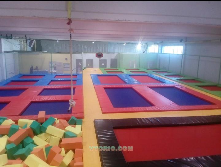 25 батутов,скалодром,поролоновая яма,надувная подушка,мягкие модули,световое оборудование.Сетки только что обновили. Есть раскрученные группы в соц.сетях. Обученный персонал.Имеются раздевалки,детская комната,видеонаблюдение,сигнализация пожарная и охранная,туалеты. Единственный центр в Ступино.