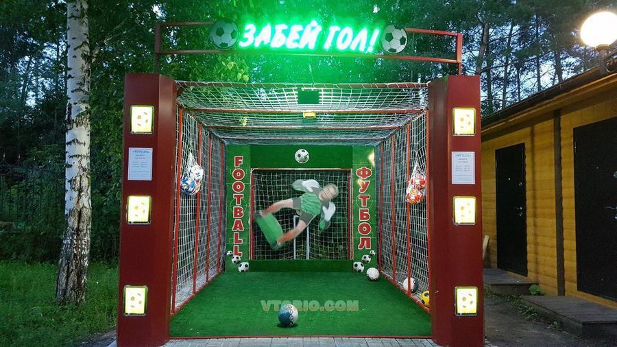 В комплекте: металлокаркас с сеткой, фигура вратаря с электроприводом, фриз, мяч - 5 шт.
