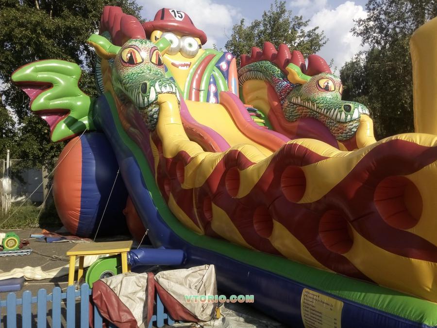 Стартовая высота горки 5 метров, 2 подъема. Горка является частью батутного комплекса: при желании можно докупить батутную часть и соединить батуты.