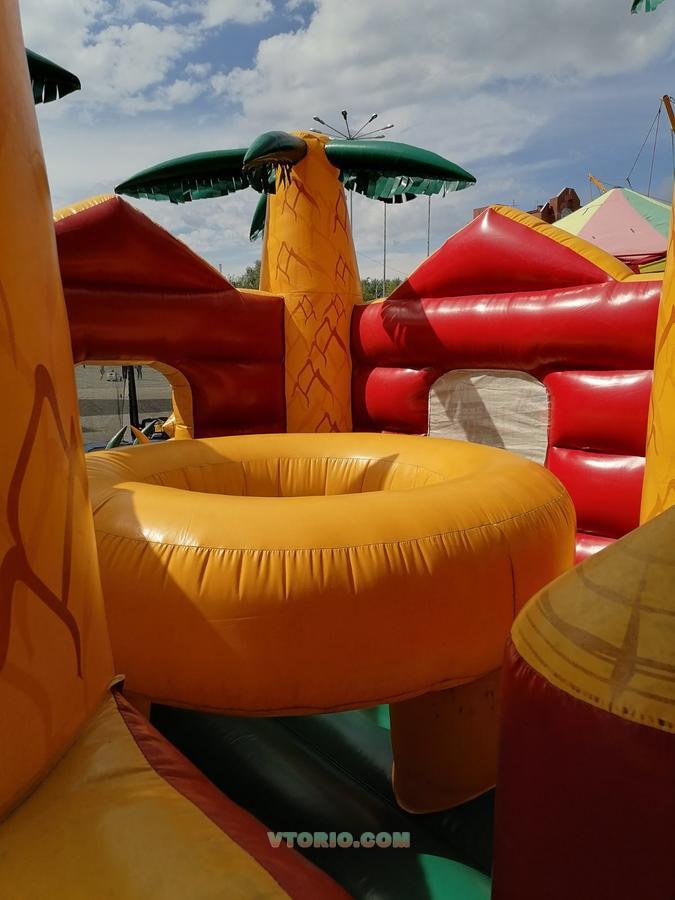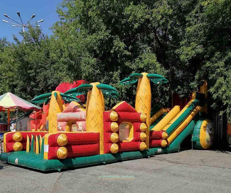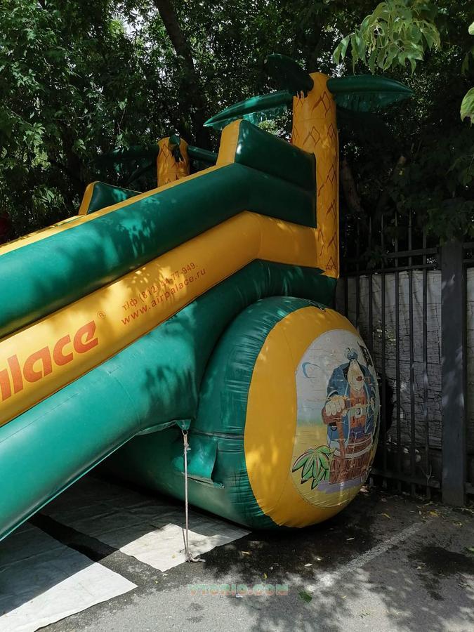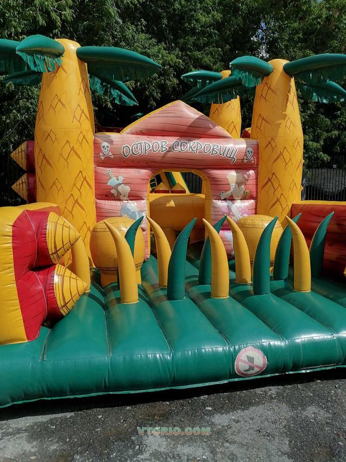 Мобильный надувной Батут "Остров Сокровищ" в виде горки с игровой площадкой, 2015 года выпуска. Производство: AirPalace, Санкт -Петербург, Россия. Предназначен для детей от 3 до 12 лет. Размеры аттракциона: Длина: 13,1 м Ширина: 5,2 м, Высота: 4,5 м, Вес: 262 кг, Высота площадки спуска 2,3 м. г. Пермь