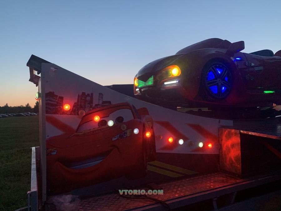 Мобильный аттракцион карусель Молния маквин представляет собой мобильный передвижной аттракцион, размерами платформы прицепа 5,8м*2м.