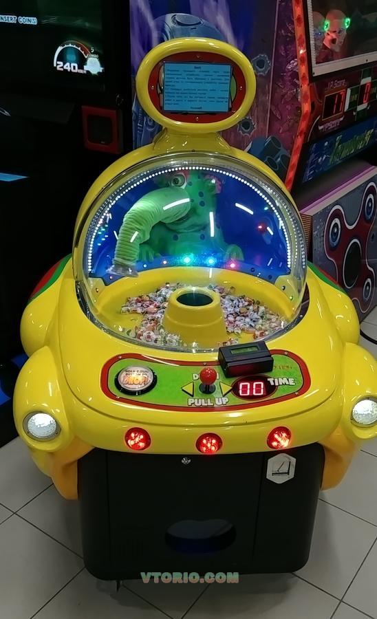 Управляя джойстиком хобота "Снорка" нужно захватывать им призы и опускать в лоток выдачи. Автомат может быть заполнен конфетами, мягкими игрушками, капсулами диаметром до 6 см. Возможно использовать 2 насадки для разных по размеру призов. 1040х1220х1440мм/135кг