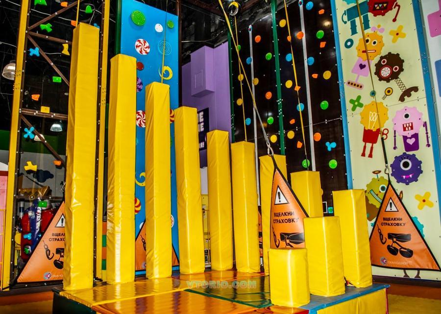 Отличный тематический скалодром. 6 тематических панелей с зацепами разной тематики. 7 страховок с системой инерционного торможения при ошибке скалолаза. Тематический аттракцион лесенка / пенечки. Все аккуратно разобрано и хранится в чистом сухом помещение. Панели отдельно, зацепы отдельно, металлические конструкции отдельно.