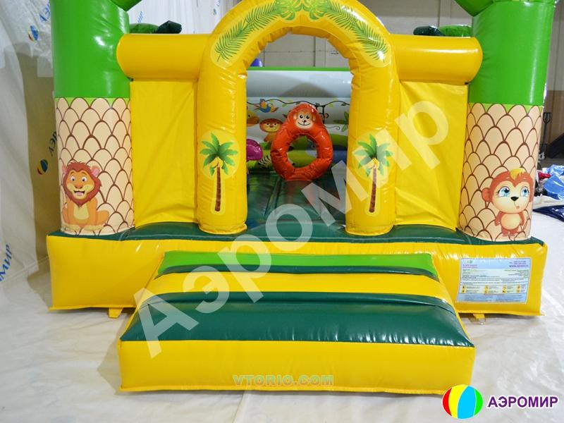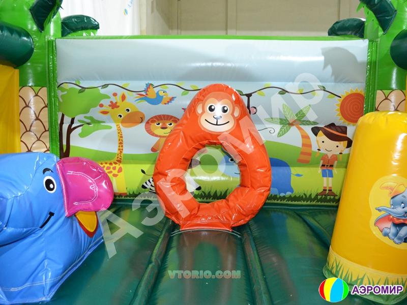 Надувной батут Сафари мини Технические характеристики Размер в рабочем состоянии (Длина⤢ х Ширина ⟷ х Высота↑) 3,0 х 3,0 х 2,5 м Объем товара в упаковке, м³ 1,5 х 0,5 х 0,5 м Материал высокопрочная, цветостойкая ткань плотностью 650 — 690 г/м² ПВХ; огнеупорная, отлично держит воздух и форму батута, легко моется, обеспечивая долгий срок службы изделия. Наполнение батута прыжковая зона, туннель-кольцо, надувные игровые элементы, надувные декоративные элементы Материал основания дно батута изготовлено из ПВХ 800-850 г Комплектация: оболочка батута; батутный вентилятор (энергосберегающий)