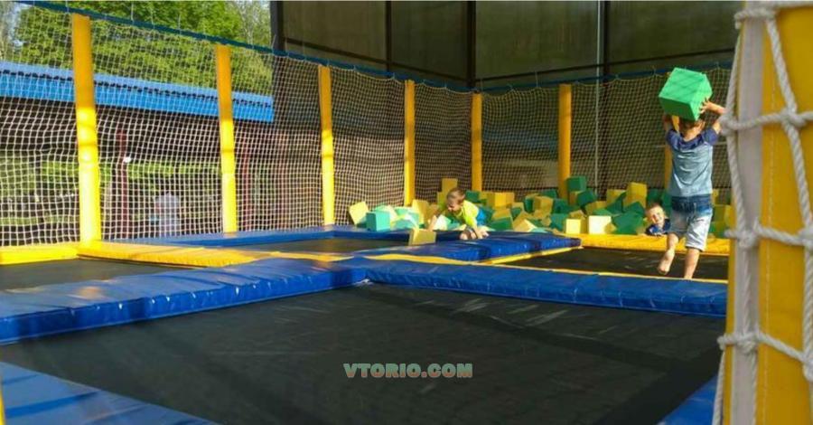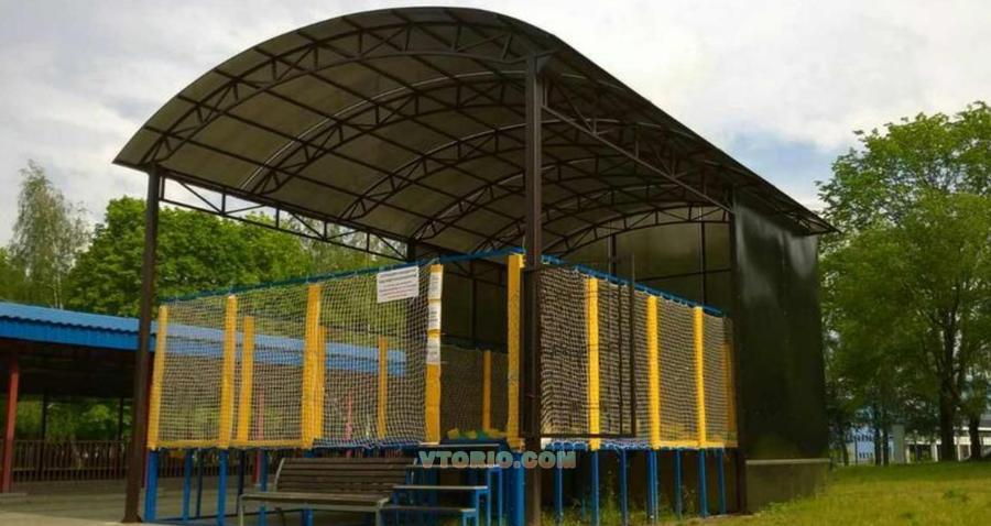 Батут спортивный 4-х секционный с поролоновой ямой и навесом. Размер 6 на 10 м. В отличном состоянии, возможность использования как в закрытом помещении так и на улице.