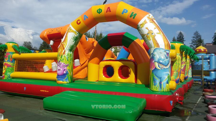 отличный батут произведен в 09.2016, эксплуат с 2017 г, в 2020 не эксплуатировался много игровых элементов, робот Бегемот бережный уход, без повреждений и заплаток все документы, 3 нагнетателя воздуха в комплекте размер д12.7хш9.1хв4.9 обращайтесь отвечу на все вопросы
