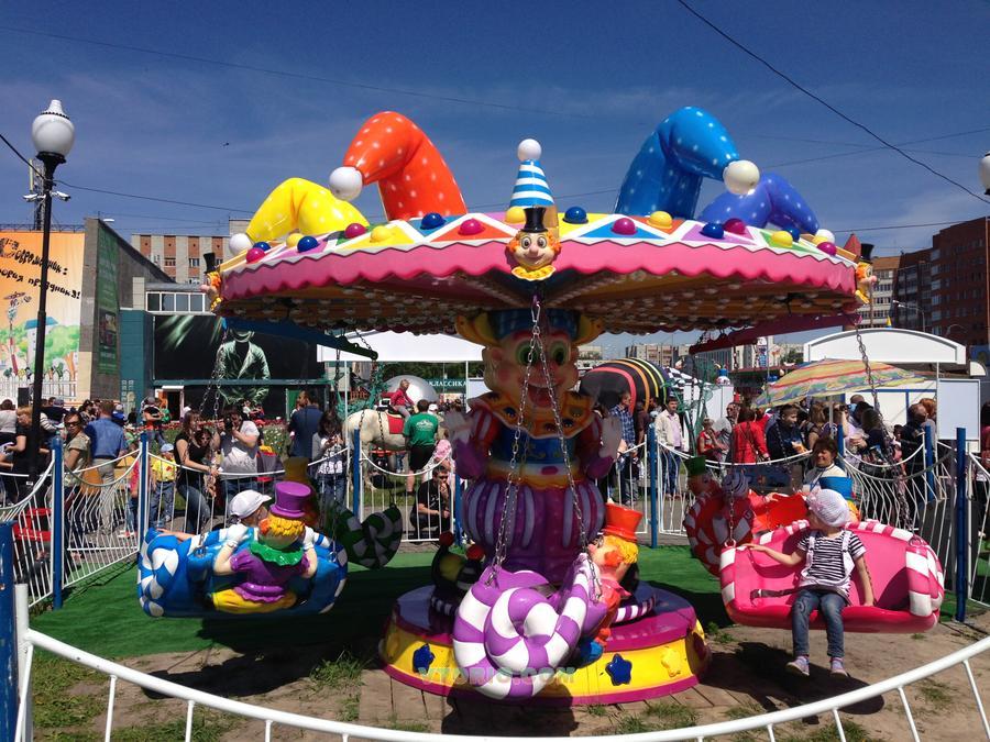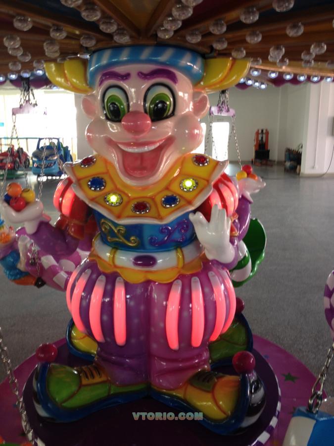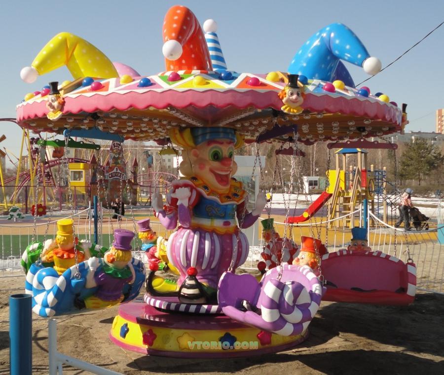 Аттракцион "Клоун" привлечет детей необычным, ярким дизайном создающим ощущение радости праздника. Высокая рентабельность, компактность, легкий монтаж и демонтаж, яркая иллюминация украсят любой парк, торговый центр. "Клоун" принесет много радости детям и их родителям. Диаметр - 4,6 м. Высота – 2,6 м. Общая вместимость - 12 человек. Мощность – 1,1 кВт Скорость вращения - 1,2 м/с Производство КНР, 2014 года выпуска