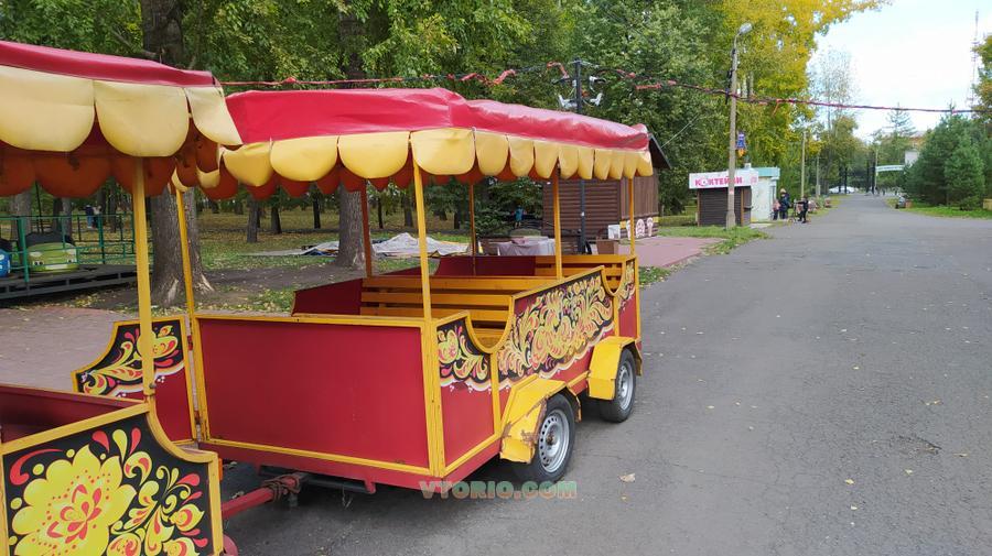- Двигатель 13л/с HONDA GX390 - Количество посадочных мест 24 детей или 18 взрослых. - Скорость движения, км/ч: вперед 8, 2; назад 4, 5 - Навес для катания в любую погоду