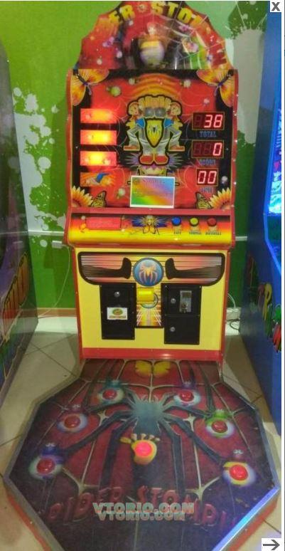 Редемпшен аттракцион. Цель игры - cтоя на платформе нужно нажимать на зажигающиеся кнопки(пауки)