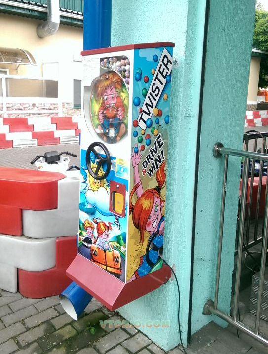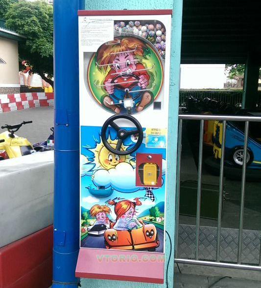 При оплате "игры" мяч попадает в лабиринт, вращая руль игрок/покупатель проводит мячик по лабиринту и получает мяч-прыгун в окне выдачи.