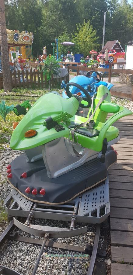 Количество машин: 5 шт. Кол-во посадочных мест: 10 шт. Скорость движения машины: 6-12 км/час Вес машины: 240 кг Длина рельсового пути: 80 м. Габарит.размеры машины: 1,9х1,5х1,2м. Мощность: 3 кВт Нормированная нагрузка:140 кг (2чел-ка) Габаритные размеры аттракциона, не более: 23,4х16,0х1,6 м. Размеры можно изменять.