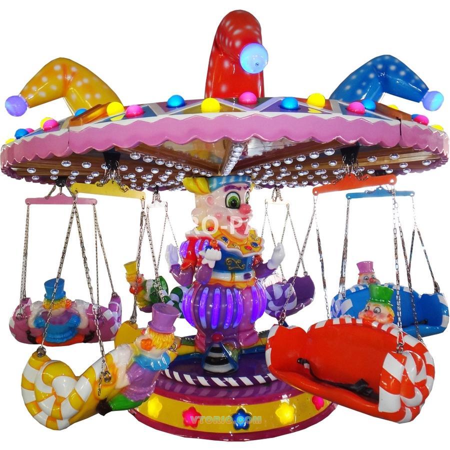 Карусель с музыкальным сопровождением. Детская карусель с клоуном в центре. Красочный дизайн и яркая иллюминация. 12 посадочных мест. Каждое посадочное место оборудовано ремнем безопасности и металлической ручкой. Запускается от пульта управления. Безфундаментная, может устанавливаться и в парке и в закрытых помещениях торговых и развлекательных центрах. Возможны сколы и царапины, подробные фото уточняйте у менеджера. Характеристики Ширина (м) 4,6 Глубина (м) 4,6 Высота (м) 2,8 Напряжение (В) 220 Мощность (Вт) 900 Вес (кг) 1200