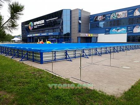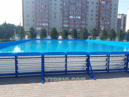 Каркасный бассейн 25 х 15 м. с полимерным вкладышем. Габаритные размеры: 25 х 15 х 0,9 м. В комплекте: сборный металлокаркас , вкладыш ПВХ, Причал с лестницей (1,25 х 3,75 х 2,2 м.), 4 шт. бамперные лодки "дискоборт", подставки для лодок. При высоте борта бассейна 0,9 м рекомендуемый уровень воды не менее 0,5 , не более 0,7 м.