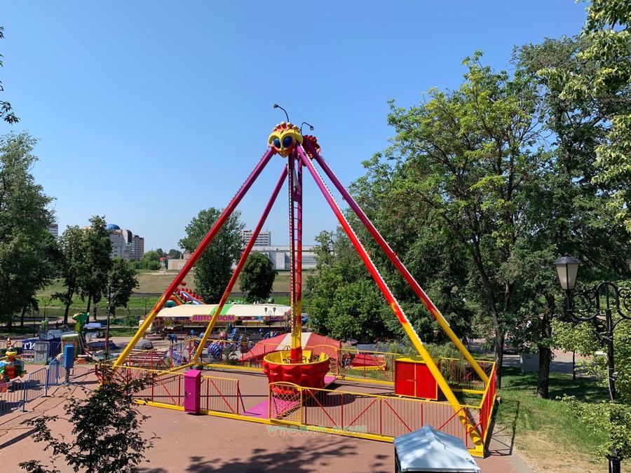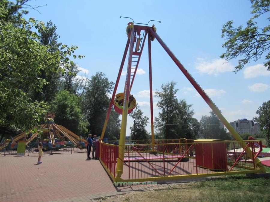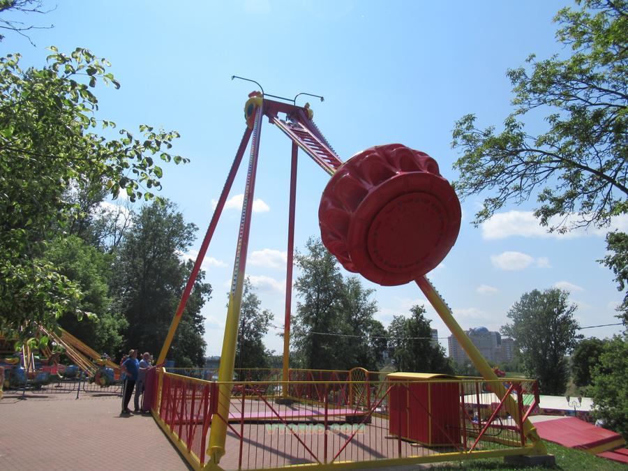 Экстремальный семейный аттракцион. Маятниковые качели с вращением кабины и иллюминацией. Качели предназначены для взрослых и детей старше 12 лет. Дети от 8 до 12 лет допускаются в сопровождении взрослых. 11 посадочных мест. Габаритные размеры : длина -13,8 м., ширина -5,8 м., высота -9,9 м.
